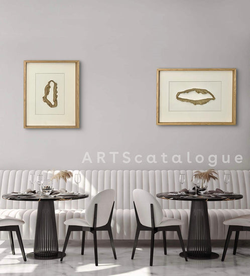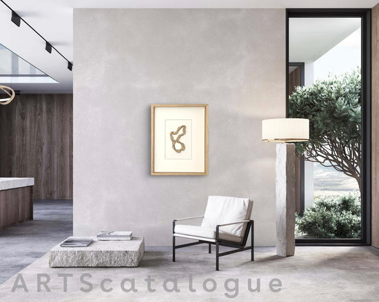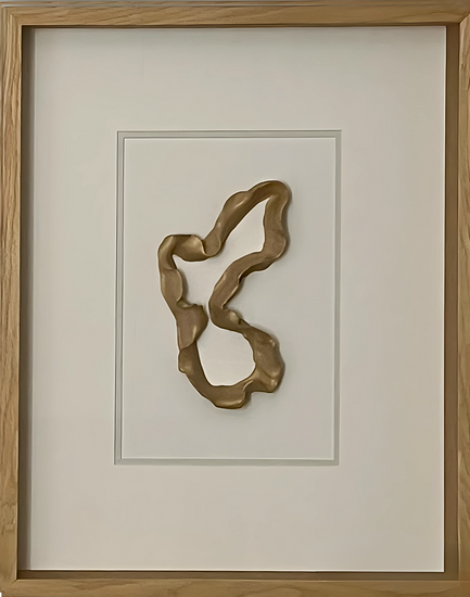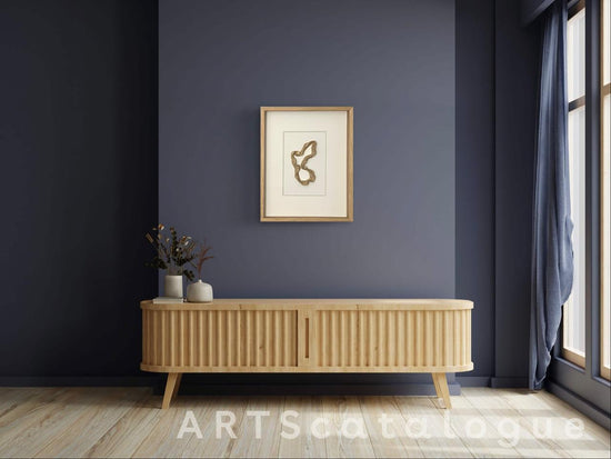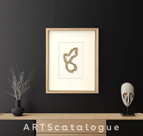 Abstract clay sculpture framed behind glass in a wooden box frame. The piece is available individually or as part of a body of work forming part of a corporate, tranquility themed, art range.