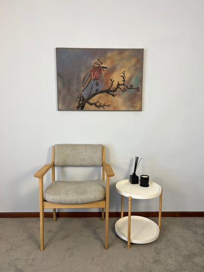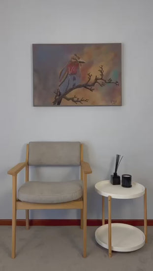 The artist wanted to capture the kingfisher’s feathers and colours to stand out against the canvas.