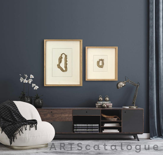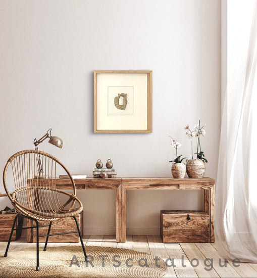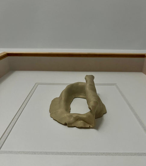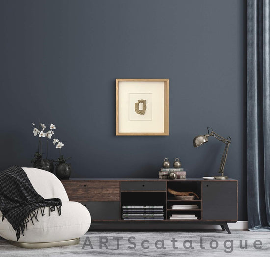Abstract clay sculpture framed behind glass in a wooden box frame. The piece is available individually or as part of a body of work forming part of a corporate, tranquility themed, art range.