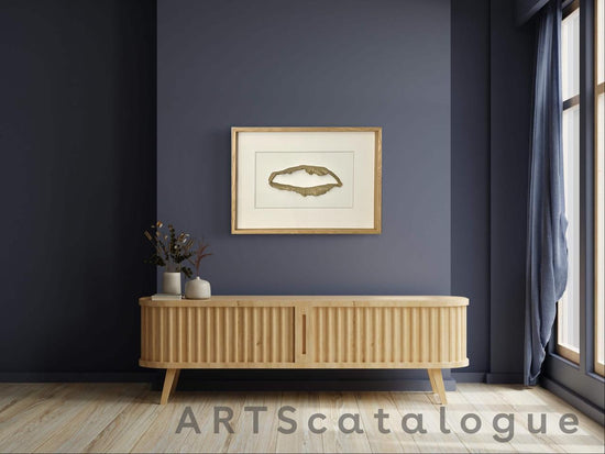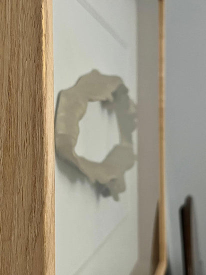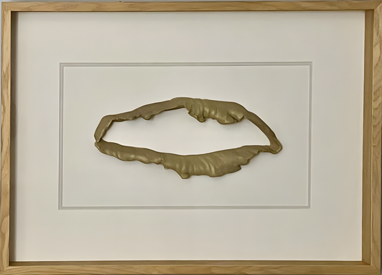 Abstract clay sculpture framed behind glass in a wooden box frame. The piece is available individually or as part of a body of work forming part of a corporate, tranquillity themed, art range.