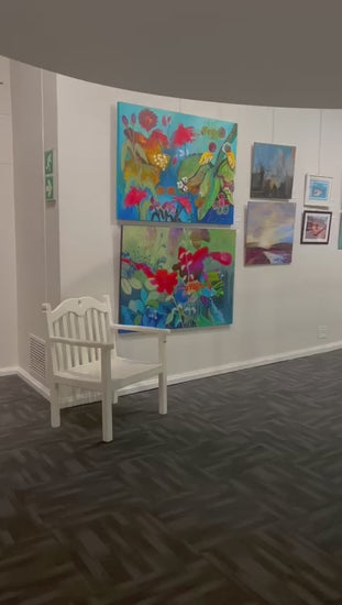 Acrylic and Acrylic Inks. Happy and bright painting with bold and colourful colours of acrylics and acrylic inks. Abstract artwork in colorful, but soft hues.