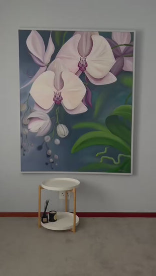 Orchid series. Acrylic on canvas. A close up of these delicate flowers on a large panel.